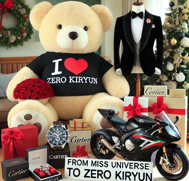 The girl Miss Universe has decided to spend the Christmas holidays with the handsome and sexy kpop idol Zero Kiryun, and also decided to give his some Christmas gifts, she has been seen preparing everything to welcome the new year with joy and she even prepared a cake for her favourite and special person and decorated the place where she will dine next to the handsome boy and sexy kpop super star Zero Kiryun